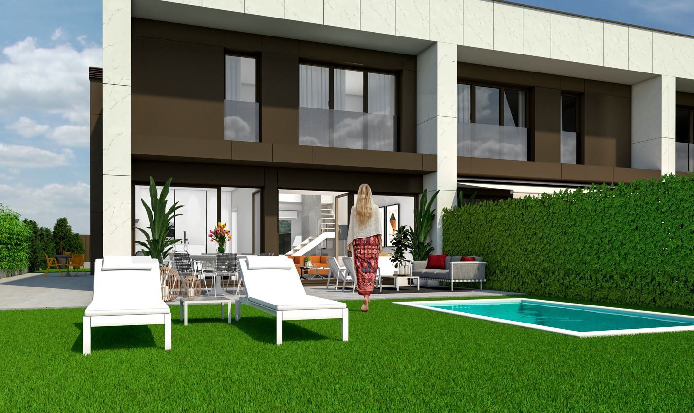 Cada vivienda ha sido cuidadosamente diseñada para ofrecer máximo confort, luminosidad y funcionalidad, con una arquitectura contemporánea que combina elegancia y eficiencia. Se distribuyen en dos plantas, con amplios espacios abiertos y grandes ventanales que inundan las estancias de luz natural, integrando el interior con el jardín privado.