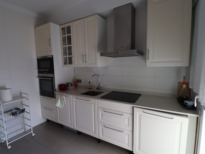 La cocina, totalmente equipada, ofrece acceso a una segunda terraza.
