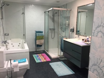 En la planta baja se encuentra un impresionante salón de más de 60 m², luminoso y perfecto para disfrutar en familia. La amplia cocina, totalmente equipada y con chimenea de leña, invita a cocinar en un ambiente acogedor. En esta misma planta también se ubica un agradable txoko con chimenea, ideal para reuniones y celebraciones, además de una despensa, un baño con ducha, un práctico almacén con armarios a medida y un garaje con capacidad para varios vehículos.