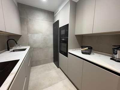 En la planta baja, se encuentra un amplio salón comedor que se integra perfectamente con una cocina americana. La cocina está equipada con electrodomésticos de última generación y cuenta con puertas de cristal correderas que aportan luz natural y comunican el espacio con el entorno. Este diseño abierto da una sensación de amplitud y confort, ideal para disfrutar tanto de momentos en familia como de reuniones sociales.