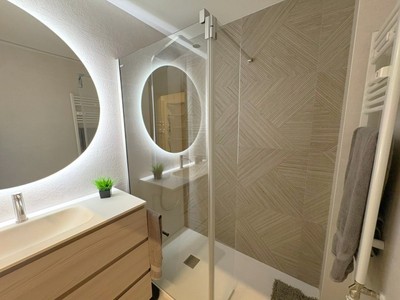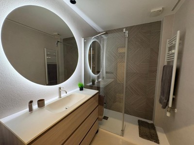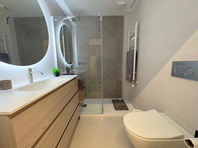 En la primera planta, se encuentra un espacioso dormitorio, que destaca por sus armarios empotrados y un vestidor incorporado, proporcionando un generoso espacio de almacenamiento. El baño de esta planta es moderno y completamente equipado con una ducha.