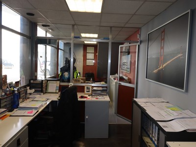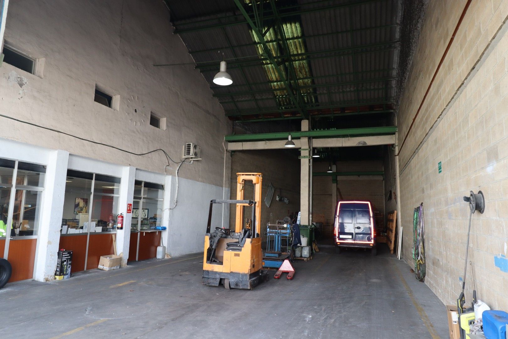 La superficie está dividida en zona de almacén, oficinas, baño y vestuarios.