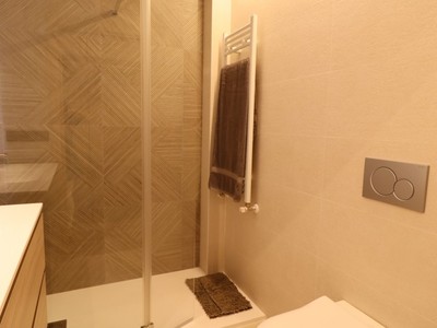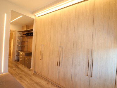En la primera planta, se encuentra un espacioso dormitorio, que destaca por sus armarios empotrados y un vestidor incorporado, proporcionando un generoso espacio de almacenamiento. El baño de esta planta es moderno y completamente equipado con una ducha.