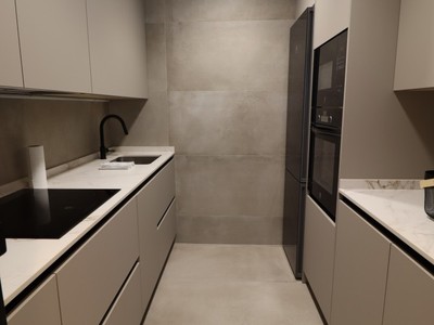 En la planta baja, se encuentra un amplio salón comedor que se integra perfectamente con una cocina americana. La cocina está equipada con electrodomésticos de última generación y cuenta con puertas de cristal correderas que aportan luz natural y comunican el espacio con el entorno. Este diseño abierto da una sensación de amplitud y confort, ideal para disfrutar tanto de momentos en familia como de reuniones sociales.