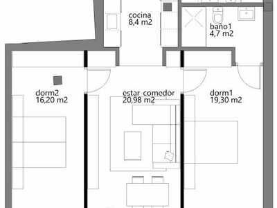 87 m2 construidos distribuidos en un espacio diáfano para salón-comedor abierto a cocina americana, una habitación y dos baños completos, uno de ellos en suite.